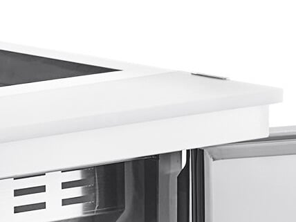 Beneath the workspace is additional storage space. Because it's refrigerated, the space is great for storing back-up ingredients, such as deli meat and cheese, as well as less common toppings. 2 epoxy-coated shelves are included and can each accommodate up to 88 lb. of weight, helping to organize your assorted supplies.