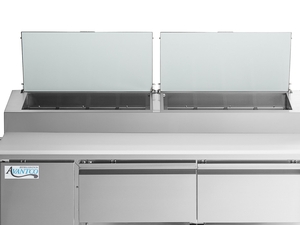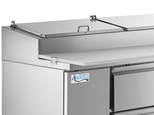 This pizza prep is one I would buy agin for the money! Plenty of room and a large cutting board works great for our limited space of a restaurant. We use it in a sports bar and it does the trick.. We added the over the counter shelf and heat lamp