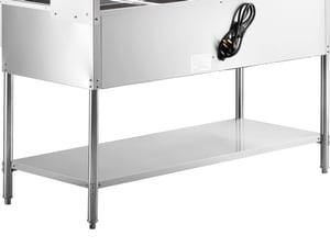 For holding hot food, the Avantco steam table is a great choice. Since this unit comes with an undershelf, it has extra space for storing pans, utensils, hot pads, and other frequently-used items. Plus, the sneeze guard keeps food free of contaminants while the overshelf makes it easy to serve up plates of hot food.