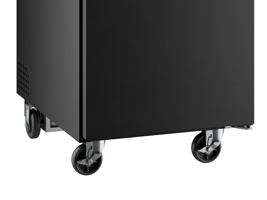 This commercial kegerator / beer dispenser features a black finish and a 1 1/2" thick stainless steel top that is both durable and extremely simple to clean. This unit is equipped with knockout plugs to install external CO2 lines.