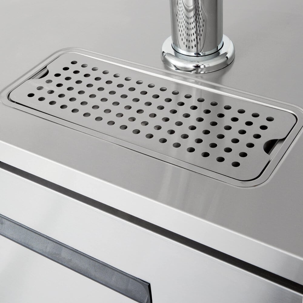 This commercial kegerator features a durable stainless steel exterior and a 201 type stainless steel interior that is both durable and easy to clean, while a built-in drip tray further expedites end-of-day cleaning. For long-lasting quality assurance and peace of mind, this unit also comes with a 2 year Parts and Labor Warranty.