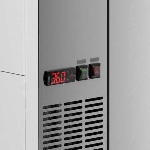 It has a 1/4 hp refrigeration system that circulates R-290 hydrocarbon refrigerant. R-290 refrigerant has an ozone depletion potential (ODP) of 0 and a global warming potential (GWP) of 3. A 115V electrical connection is required for operation.