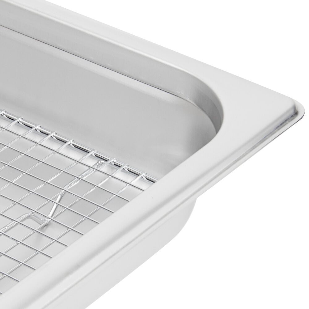 This warmer comes with a chrome-plated footed pan grate to keep your food from sticking to the bottom of the steam table pan. The raised grate also serves as a rack for items that should not sit in liquid or juices. It also helps to drain foods that are boiled or fried to help keep them crisp. This grate is sized to fit within the full size steam table pan.
