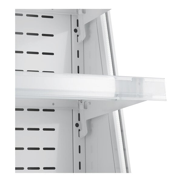 This merchandiser contains a perforated back panel to ensure that air moves freely throughout the unit, keeping food and drinks cool. With increased ventilation, this unit uses less energy than comparable models. Also, the perforated back panel prevents the user from blocking airflow if the merchandiser becomes overfilled.
