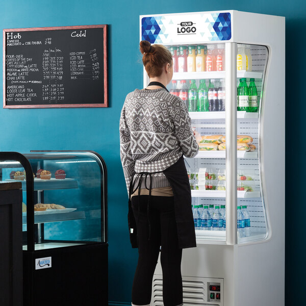 Display your grab and go items in style while keeping them chilled with this Avantco refrigerated air curtain merchandiser with a customizable panel.