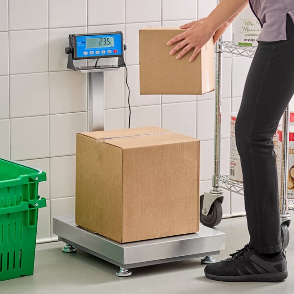 It features a stainless steel 21 11/16" x 16 9/16" platform that stands up to supporting heavy packages. The steel construction and aluminum alloy indicator provide the durability you need for daily use.