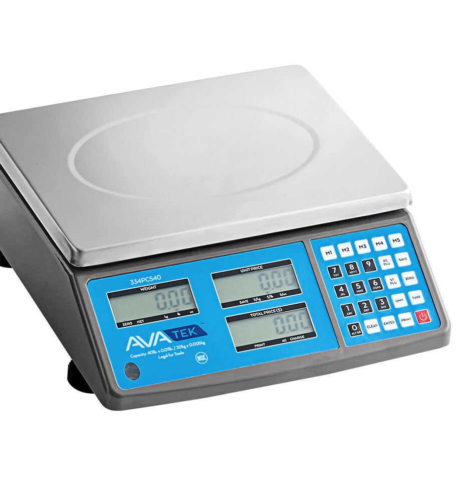 AvaTek PCS40K 40 lb. Digital Price Computing Scale, Legal for Trade with Thermal Label Printer