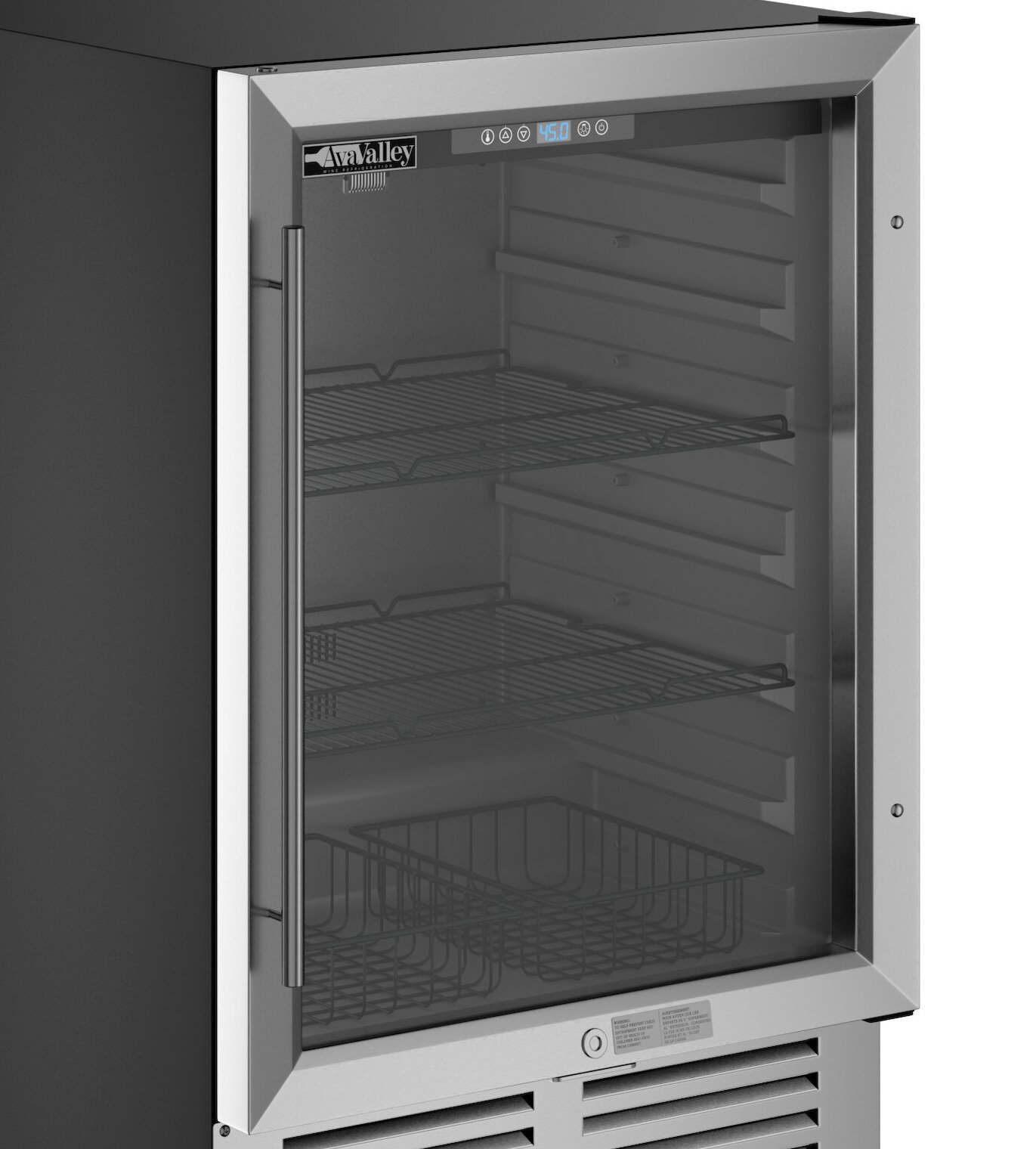 The full length glass door is crystal clear for an aesthetic presentation, and it has a lock to ensure contents remain secure after hours. Plus, the door frame and handle are made from stainless steel to guarantee durability.
