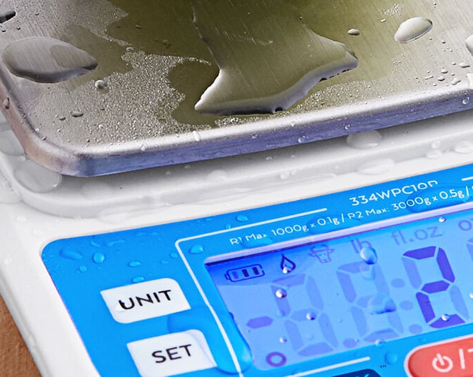 This scale works well but I don't think that it should be rated IP65 was running it under the faucet caused water to get under the screen. Webstuarant did replace for free though.