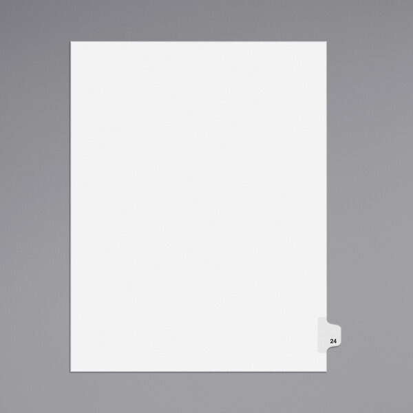 The Avery® premium legal exhibit #24 side tab divider set is perfect for organizing index briefs, legal exhibits, and other important documentation. With an unpunched binding edge, these 8 1/2" x 11" sheets conveniently fit most binding systems for easy use. The dividers all feature a pre-printed tab marked "24", allowing you to have quick access to your records with extras on-hand for other reports.