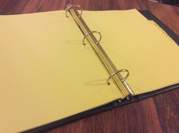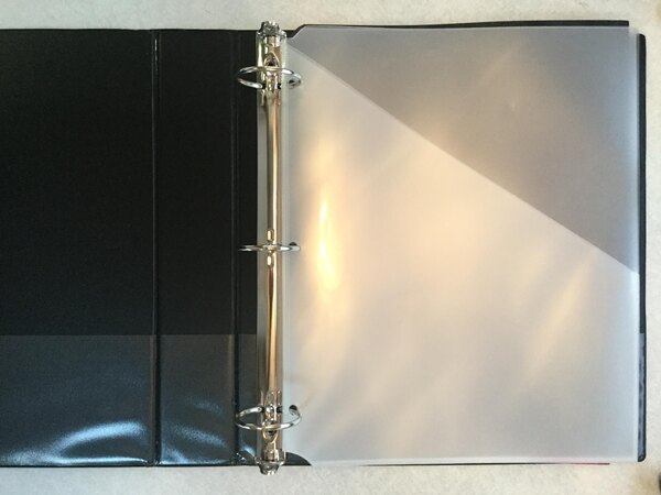 Black, inexpensive binder is a simple way to organize your files, notes, recipes or many other items inside a three ring binder. A non view binder with a solid cover.