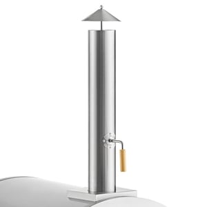 For convenient access to the oven, this unit is elevated on a sturdy stainless steel stand complete with rolling casters. Handles are built into either side of the stand to allow for a firm grip throughout transport. Additionally, accessory holders are placed throughout the stand's construction to keep tools close at hand as you cook.