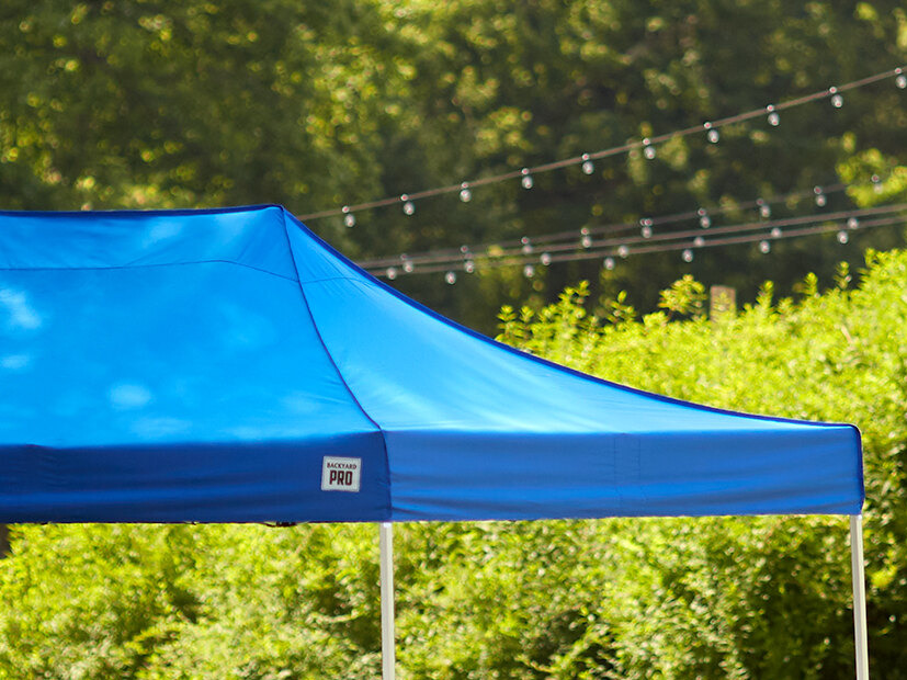 This tent is awesome! We purchased it to use as a shade for our pool 32x14 - the 15' wide model perfectly strattles the pool and we are able to pick up and move it as the sun repositions throughout the day. As an owner of several pop-up type tents, they absolutly need to be stored when the weather turns - I know that from experience. Additionally, never leave them out in the sun for days on end as that only weakens the shade fabric. I purchased several leg weights to keep the tent from moving {(8) 7.5 open-ended] and had two securing each leg. My 4th of July guests were wowed that we came up with this idea and we received many compliments. We LOVE it!!!
