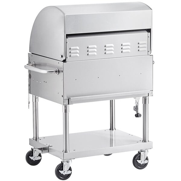 When the weather is warm and your patrons are hungry, nothing is more satisfying than getting outside and grilling up your signature meats, kebabs, and vegetables for them to enjoy! Built with integrity in mind, this deluxe stainless steel grill with a roll dome and a cover offers you a durable, heavy-duty grilling solution for country clubs, resorts, hotels, and caterers.