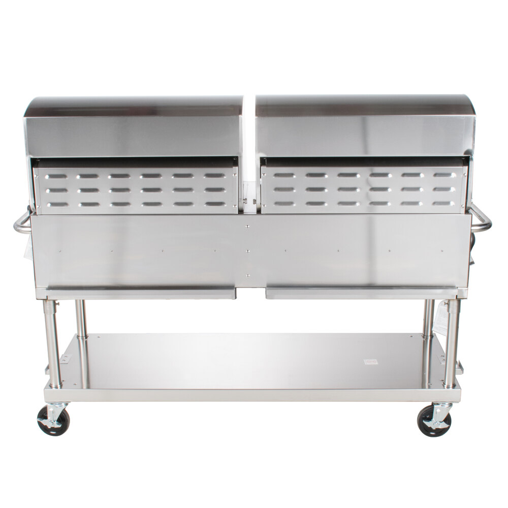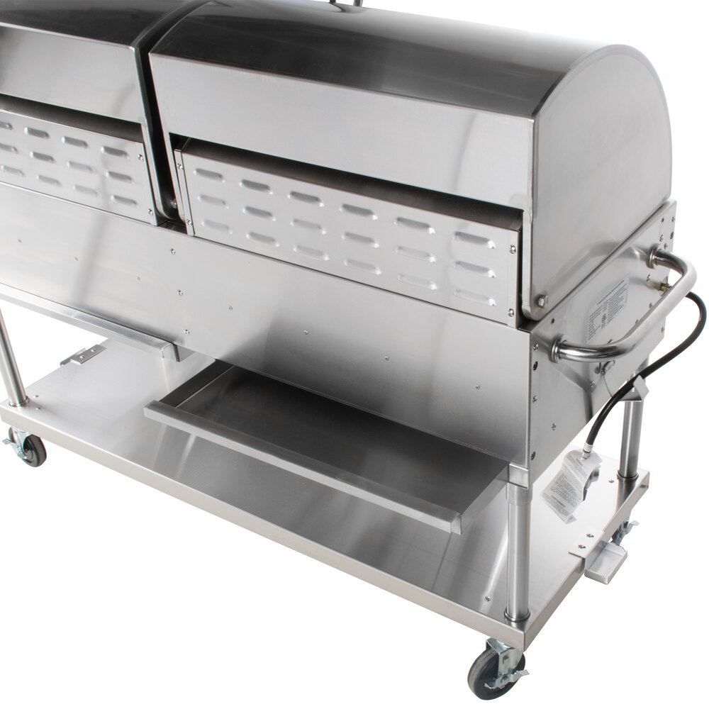 When the weather is warm and your patrons are hungry, nothing is more satisfying than getting outside and grilling up your signature meats, kebabs, and vegetables for them to enjoy! Built with integrity in mind, this deluxe stainless steel grill with a roll dome and a cover offers you a durable, heavy-duty grilling solution for country clubs, resorts, hotels, and caterers.