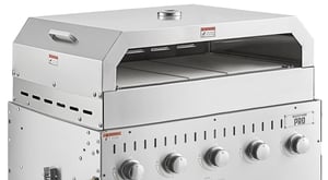You can convert this liquid propane outdoor grill into a deluxe pizza oven with the included pizza oven attachment! This versatile attachment allows you to cook fresh housemade pizzas, bread loaves, or flatbreads using your grill, eliminating the need to purchase a separate pizza oven.