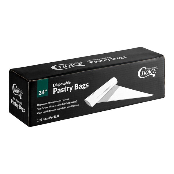 Made from 0.075 mm thick low density polyethylene, these flexible 24" decorating bags come in a convenient box that stores and dispenses them, so you can save on storage and counter space in small work areas.