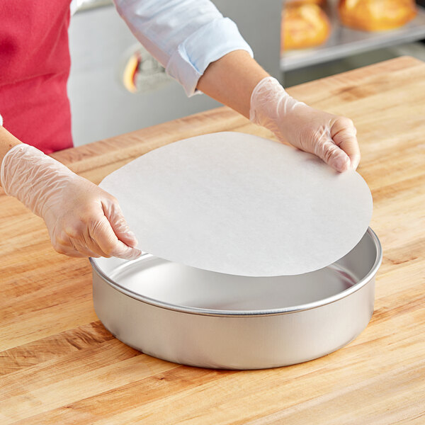 It's the perfect solution for preserving the integrity of your cookware and simplifying cleanup in any bakery or pizza shop. Pre-cut for round cake pans, it saves time and effort by providing a convenient way to line your pans before baking. Whether you're baking cakes or pizzas, it's the perfect tool to streamline your baking process and ensure consistent, high-quality results every time.