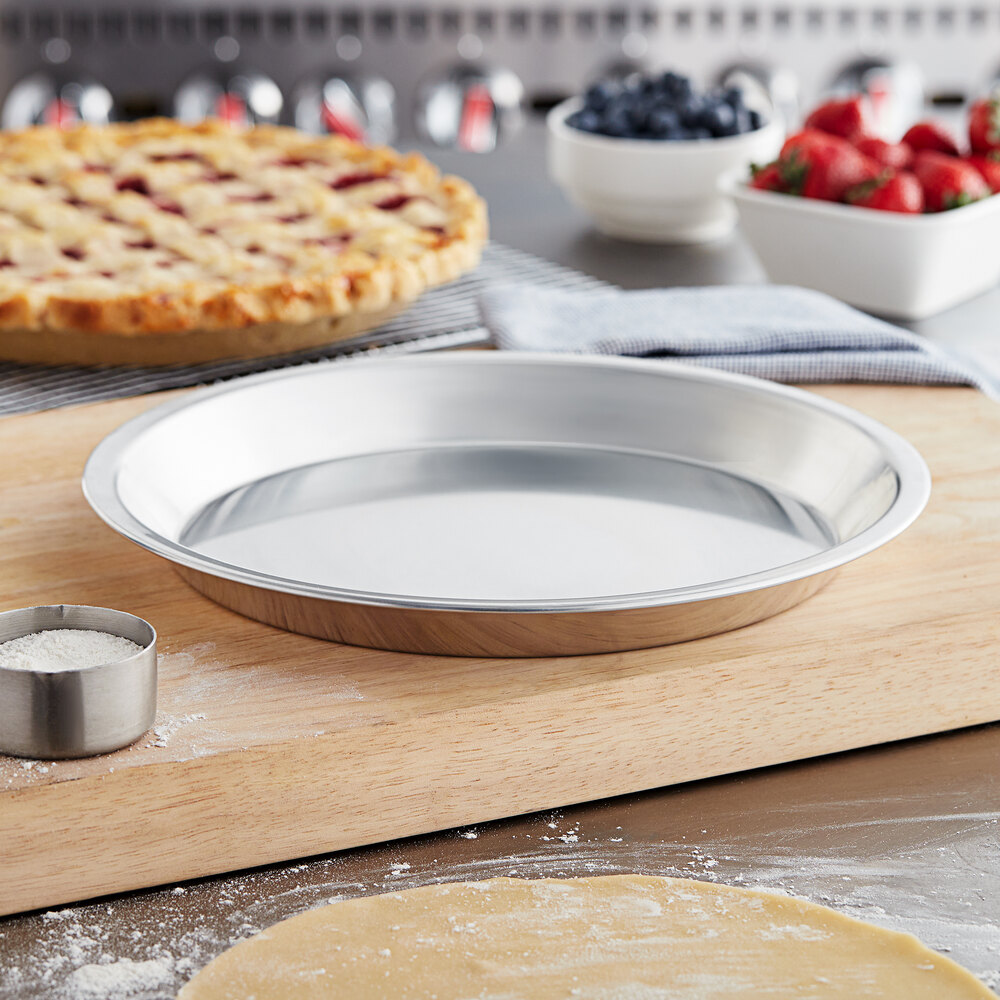 This sturdy 16-gauge aluminum pie pan provides extra strength and durability and works well for baking and storing delicious pies from apple crumb to blueberry to pumpkin! This reusable pan is designed for long-lasting use and is strong enough to stand up to the rigors of daily use. Your kitchen will move quickly and efficiently with this convenient pie pan!