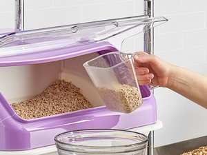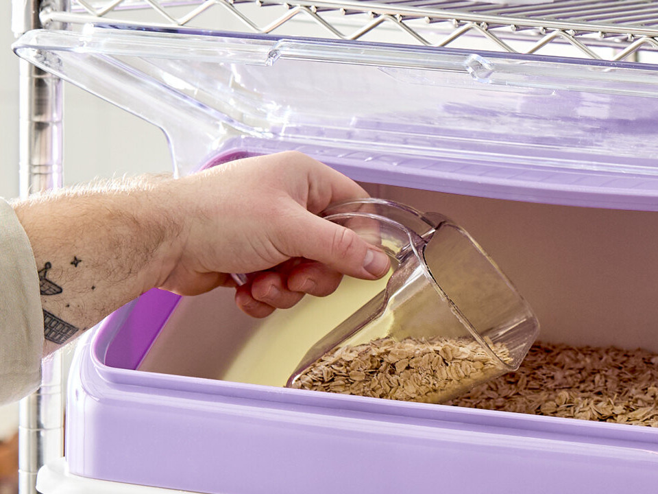 This bin is perfect for organizing your workspace and providing quick access to ingredients. Keep your bulk ingredients properly stored and ready to be scooped with the help of this bin!