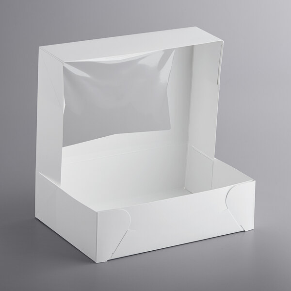 Baker's Lane 14" x 10" x 4" White Customizable Auto-Popup Window Cake / Bakery Box - 10/Pack