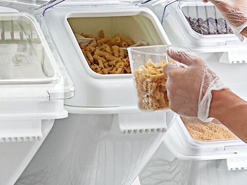 The bins have lockable lids to help prevent any interference when scooping, making every ingredient easily accessible with limited mess.