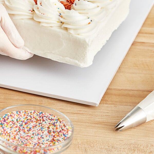 The grease-resistant surface of the cake drum helps contain excess icing, preventing messes and ensuring that your desserts maintain a clean and professional appearance. Whether you're setting up a cake for a special event or showcasing your daily offerings, this cake drum is a practical and stylish choice.