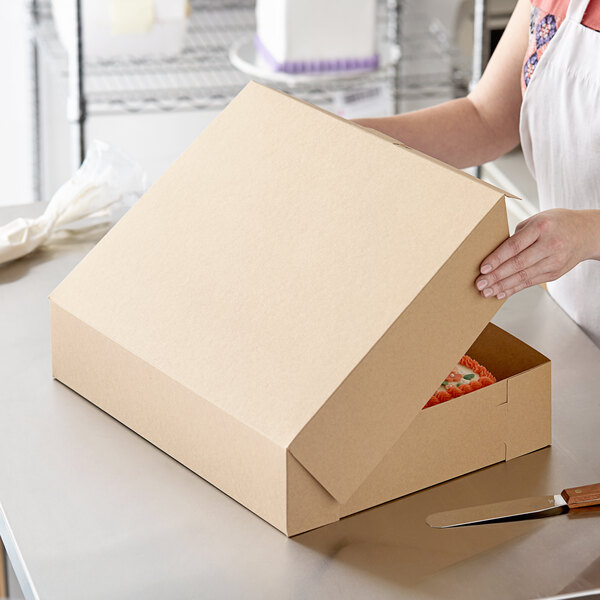 Baker's Lane 19" x 14" x 4" Kraft Customizable Half Sheet Cake / Bakery Box - 10/Pack