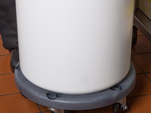 This bin and lid kit also includes a durable plastic dolly that supports up to 350 lb. so that transporting ingredients or waste is easy! Twist the bin onto the dolly to smoothly roll from one area of your facility to another.