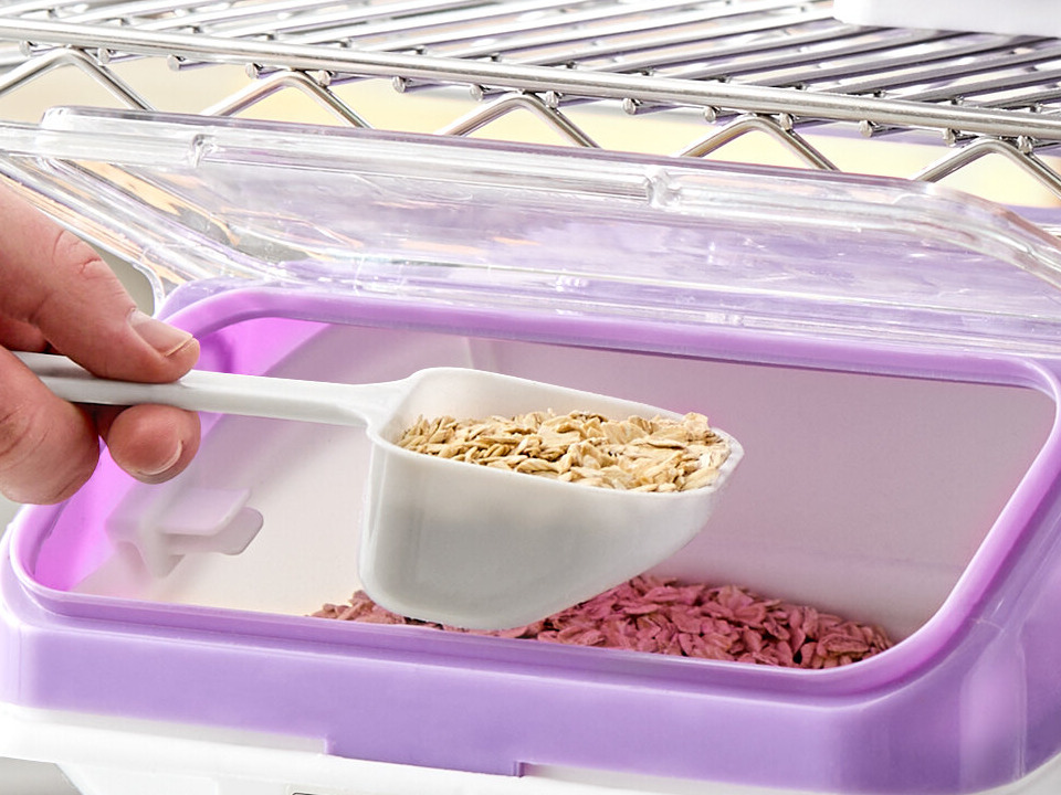 This bin is perfect for organizing your workspace and providing quick access to ingredients. Keep your bulk ingredients properly stored and ready to be scooped with the help of this bin!