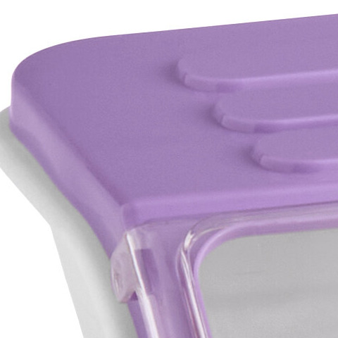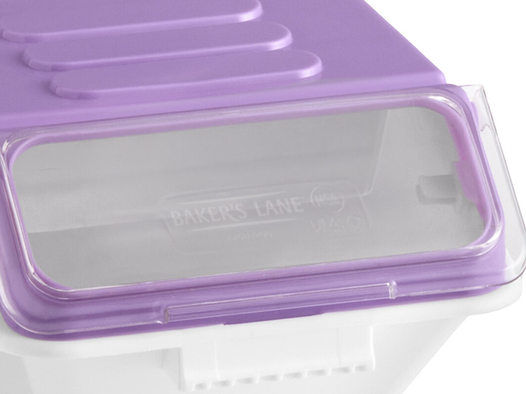 This ingredient bin features a purple lid which identifies allergen-free ingredients, making it easy to maintain health codes and honor guests' dietary requirements.