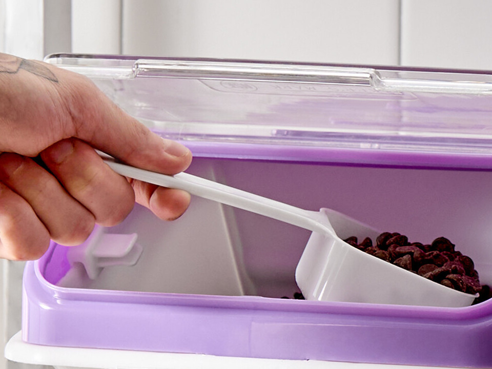 This bin has a flip-lid that locks when opened, ensuring it stays in place as you scoop ingredients.
