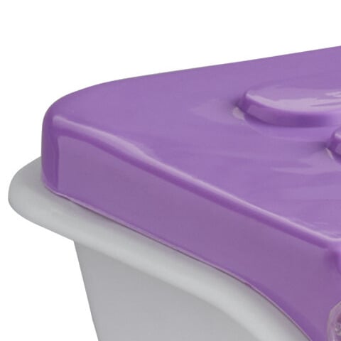 This ingredient bin features a purple lid which identifies allergen-free ingredients, making it easy to maintain health codes and honor guests' dietary requirements.