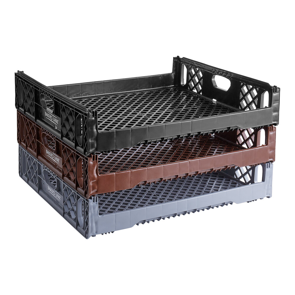 The tray's rail / groove design allows for efficient blind stacking, optimizing your storage space and keeping your bakery organized. Additionally, the space-saving cross-stack and nesting capabilities allow you to stack different tray sizes in one area, maximizing your storage space and streamlining your bakery operations. Move, store, or display your baked goods in your high-volume bakery, supermarket, or deli with this Baker's Lane bread tray!