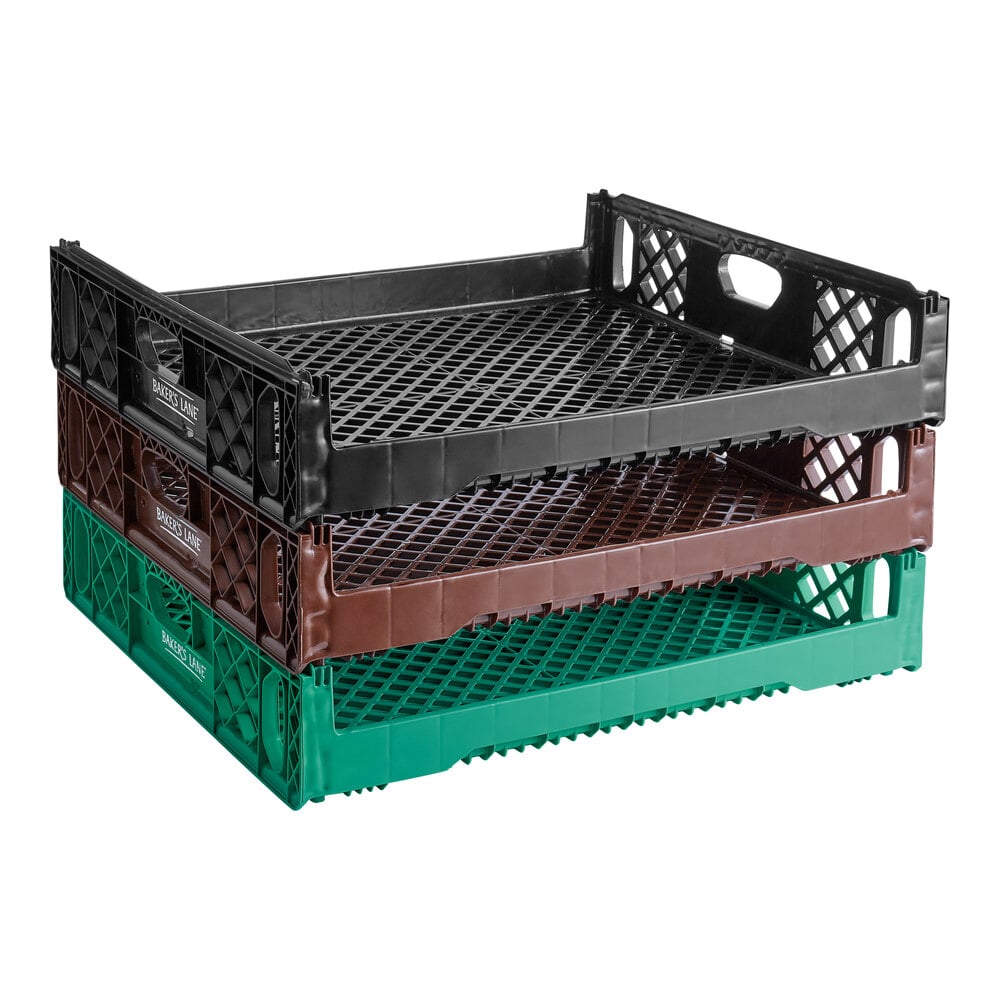 A good price for some bread trays. They are a good size and makes transporting a lot of bread easy. The only downside is that they can be a little tricky to stack; you have to line them very straight to get them to slide in place. They're nice and sturdy too.
