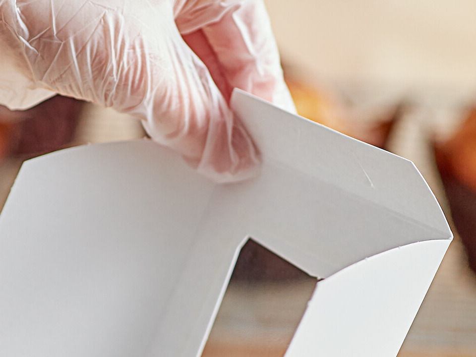 Attractive box for our laminated baked goods. Easily holds 4-6 medium-sized pastries. The boxes are well-scored and easy to fold. We stamp ours with a stamp and ink pad, and the result is customized but at a fraction of the price of pre-printed boxes. These do benefit from placing a deli sheet in the bottom if your baked goods release a lot of butter/fat.
