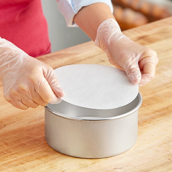 It's the perfect solution for preserving the integrity of your cookware and simplifying cleanup in any bakery or pizza shop. Pre-cut for round cake pans, it saves time and effort by providing a convenient way to line your pans before baking. Whether you're baking cakes or pizzas, it's the perfect tool to streamline your baking process and ensure consistent, high-quality results every time.