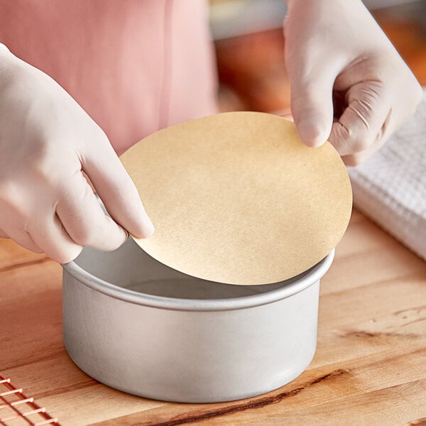Simplify your baking process with this Baker's Lane 6" round unbleached parchment pan liner!