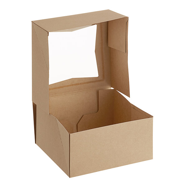 Baker's Lane 6" x 6" x 3" Kraft Customizable Auto-Popup Window Pie / Bakery Box - 10/Pack