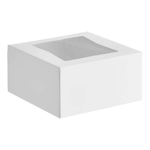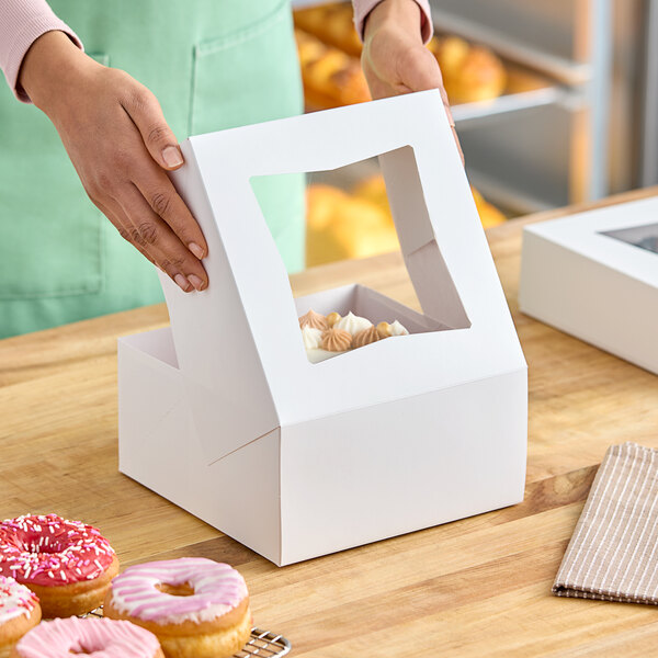 Baker's Lane 8" x 8" x 4" White Customizable Auto-Popup Window Cake / Bakery Box - 10/Pack
