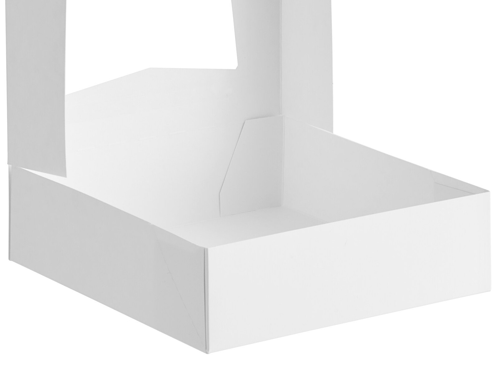 These bakery boxes are perfect for cakes and larger baked goods. The white design gives a clean, professional look, and they’re easy to customize with labels or stamps for branding. The cardboard is sturdy, holds up well during transport, and is simple to assemble. A great value for bakeries and catering businesses — highly recommend!