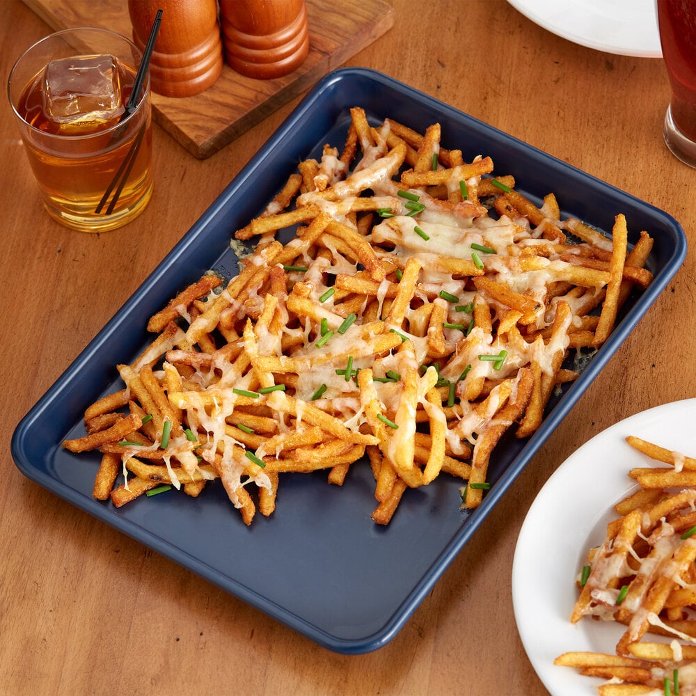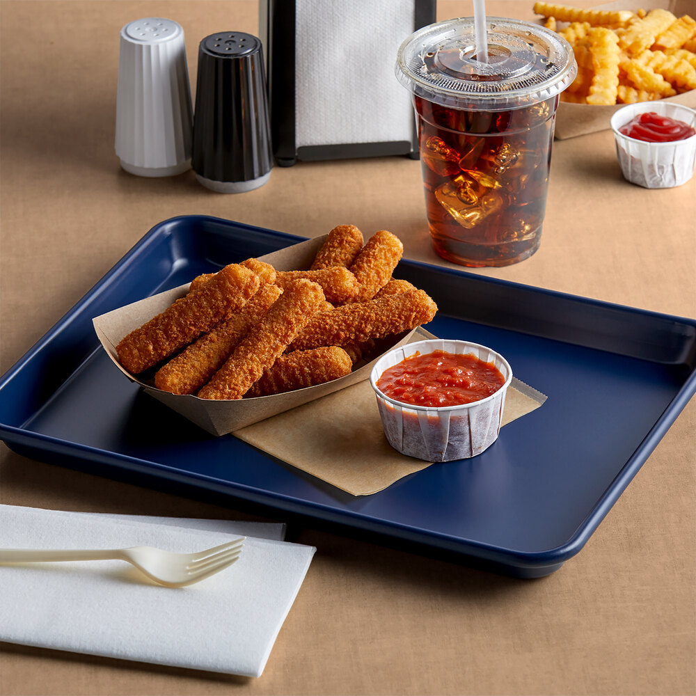 This tray's dark blue coloring adds a modern touch to your establishment!