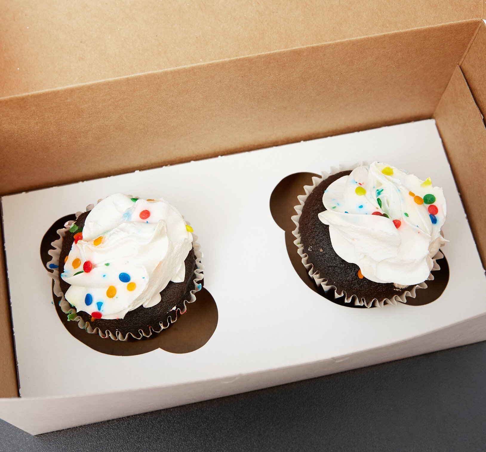 This insert is made from clay-coated kraft paperboard. It can be used on either the white or kraft side to match your compatible cupcake box (sold separately) for a clean, professional presentation, ensuring it won't detract from the intricacy of your confectionary creations.