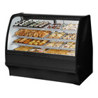 Increase the sales of your most popular bakery products with this True bakery display case! This display case features a powder-coated, rounded front and back with an aluminum cover and front panels. The unit also has sturdy, solid wood sides. Its attractive and eye-catching curved glass front gives your food excellent visibility. The dry, unrefrigerated design is great for showcasing your fresh donuts, muffins, bagels, and specialty breads!