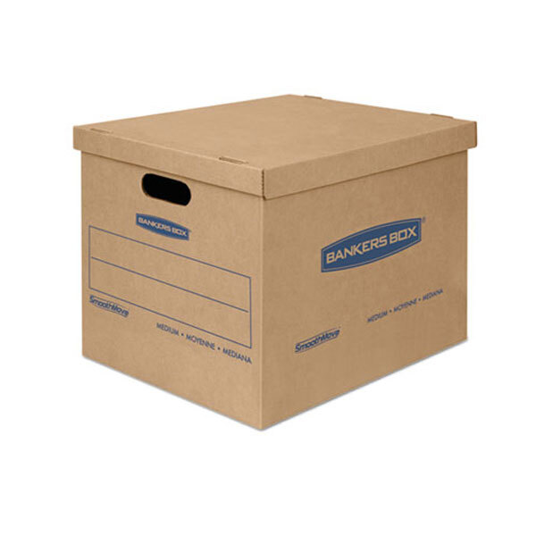 Ship out packages with ease thanks to this Banker's Box 7714210 SmoothMove Classic 15" x 12" x 10" kraft / blue small moving box. With a durable 32 ECT B-Flute corrugated and double-end and double-bottom construction, this box is ideal for standard and heavy-duty applications. Its kraft-colored surface is easy-to-write on and even includes designated writing areas for easier labeling.