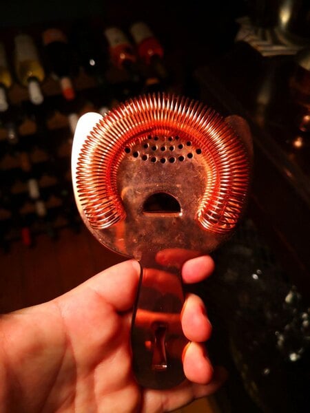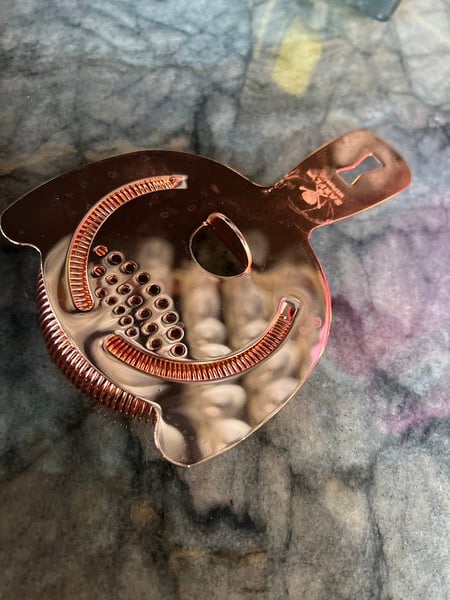 The Barfly® M37071 Hawthorne Strainer is a standout tool for both professional and home bartenders. Crafted from heavy-duty 18/8 stainless steel, it resists pitting and corrosion, ensuring longevity even with frequent use. The four-prong design provides excellent stability when placed on shakers or mixing glasses, while the tightly wound spring effectively filters out ice and other solids. Its ergonomic handle includes a built-in finger stop for a secure grip, enhancing control during use. At 5 5/8 inches in length, it's compatible with most standard barware, making it a versatile addition to any cocktail setup.