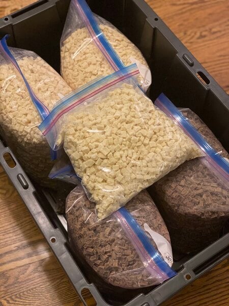 The shipment came quickly and the product is as described in the product details. High quality choc chips, perfect size for my big batch of Matcha & White Choc cookies and the choc chips smell so good. Some crushed pieces on the bottom.