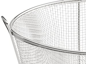 "The Choice brand 11 1/2" fry basket is perfect for not just frying but also boiling or steaming things in large pots that you don't have a built in steamer basket for. The guage of the material is thick and the nickel plating is very durable and has not rusted on me yet after mul..."