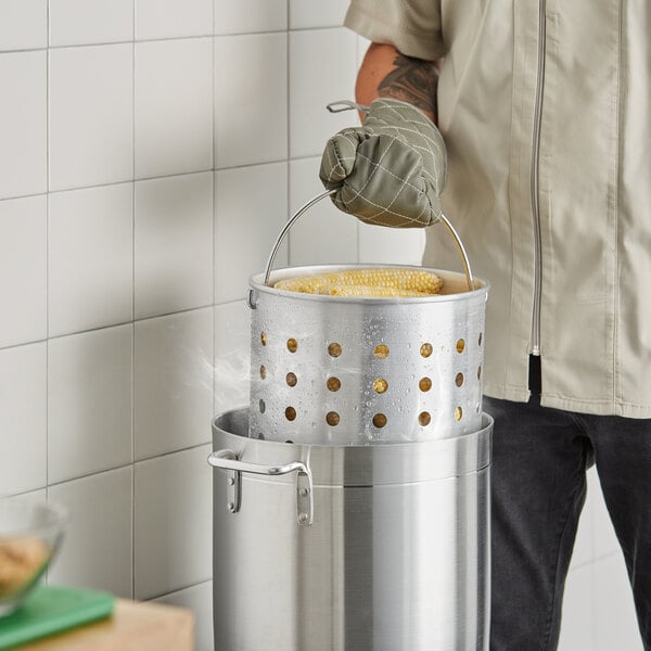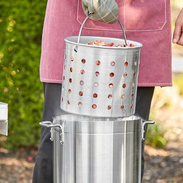 This steamer basket boasts a 20 qt. capacity, making it the perfect tool for blanching vegetables, rinsing pasta, draining foods, or even for canning purposes. Whether you're preparing a large batch of pasta or steaming vegetables for a crowd, this aluminum stock pot steamer basket is a must-have for any commercial kitchen looking to streamline their cooking processes.