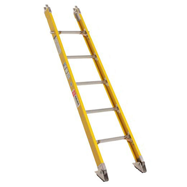 Ensure worker comfort and safety with the help of this Bauer Corporation 33952 339 Series Type 1AA 3' yellow fiberglass tapered base section ladder with hoop shoes. This tapered ladder boasts a 375 lb. capacity backed by solid aluminum rivets that strengthen stress points, extending the life of your ladder. These rivets are stronger than traditional steel tubular rivets, equipping this ladder for consistent and reliable use. The ladder also includes hoop shoes with a rubber tread that fasten securely to shoe attachments reinforced with castings and heavy-gauge aluminum, ensuring that shoes stay in place. This OSHA-compliant and ANSI-certified ladder offers users additional safety thanks to heavy-duty aluminum reinforcement sleeves on the rails that strengthen this ladder's assembled structure and equip it for lasting use. Its interlocking side rails and riveted "rung-to-rail" design ensure superior quality and safety measures while making it easy to replace rungs if necessary. It's also easy and comfortable to climb thanks to high-profile slip-resistant round rungs.